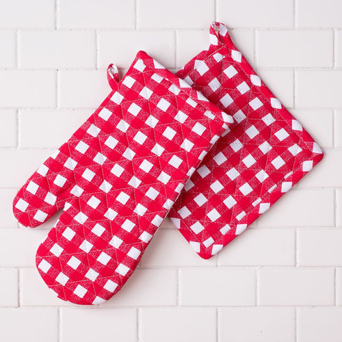 Checkered Cotton Oven Mitt/Pot Holder Set 4 pack (2 Colors)