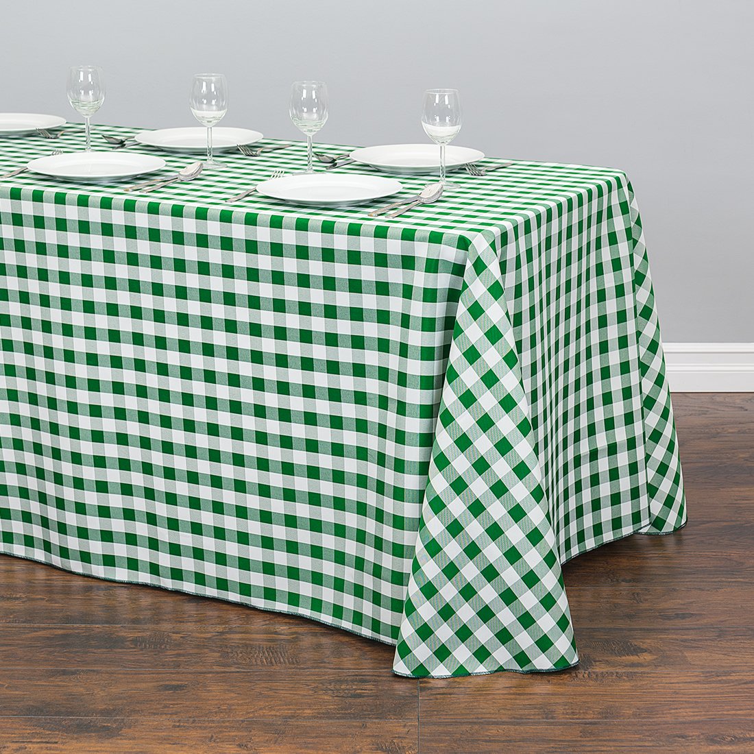 Whether you're event theme is a picnic, old fashioned diner, or a giant chess board, our round checkered tablecloths are the perfect addition. Dress it up with chargers and realistic silk flowers, or keep it simple with matching checkered napkins. 90 x 156 in. rectangular tablecloths offer a full drop on standard 8 ft. banquet tables.